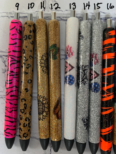 Epoxied Gel Ink Joy Refillable Pens glittered, different styles, different colors